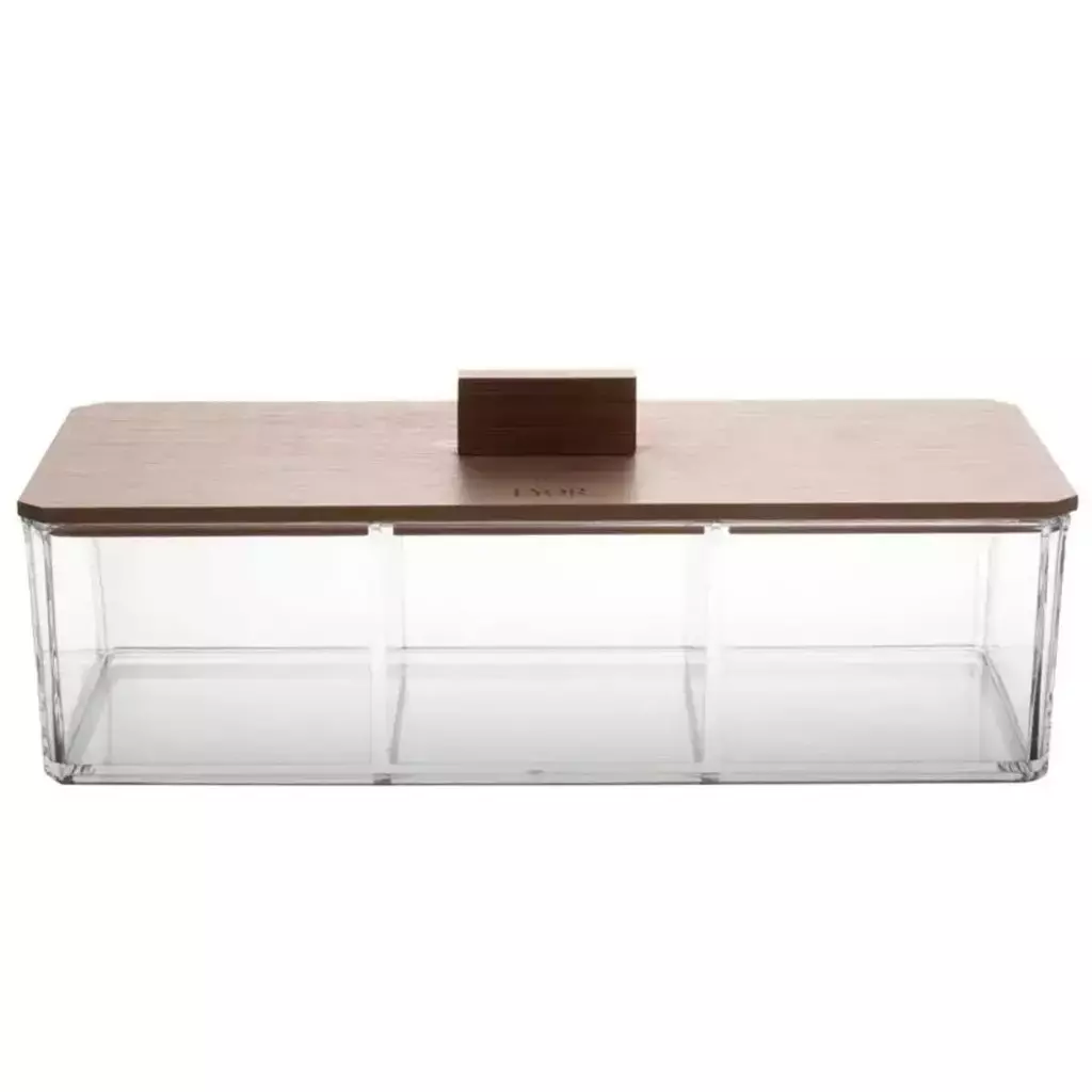 Caixa Organizadora com Tampa de Bambu e 3 Divisórias da Lyor – 23x9,5x8cm