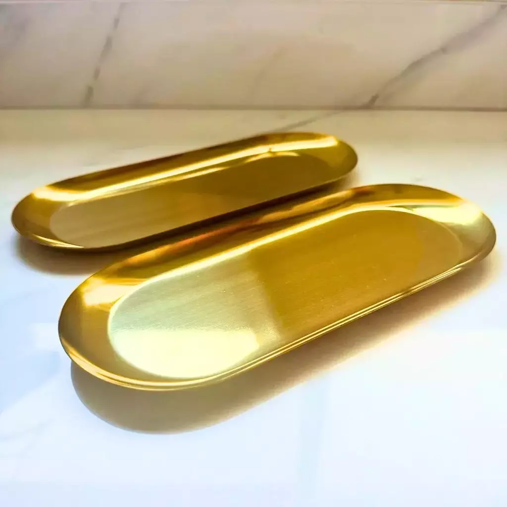 Mais que um conjunto, um duo de charme e versatilidade. Com design minimalista e acabamento todo em dourado, essas bandejas ovais acomodam joias, chaves ou pequenos itens com elegância e brilho na medida certa.