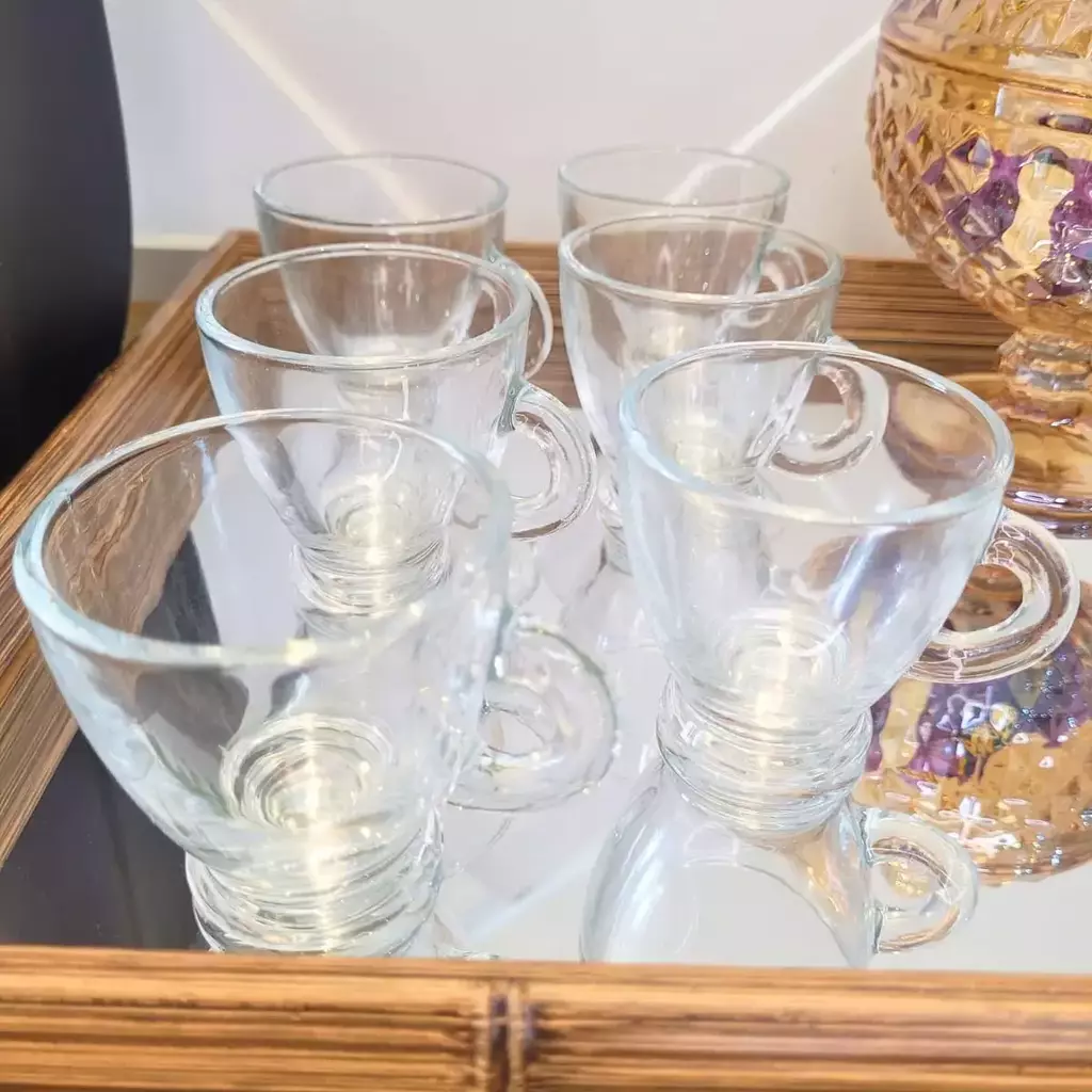 Delicadeza e transparência para valorizar cada detalhe do seu café. Esse jogo com 6 xícaras em vidro é ideal para quem ama receber com charme ou simplesmente curtir um momento especial no dia a dia. Seu design leve e elegante combina com qualquer composição de mesa, da mais clássica à mais moderna.