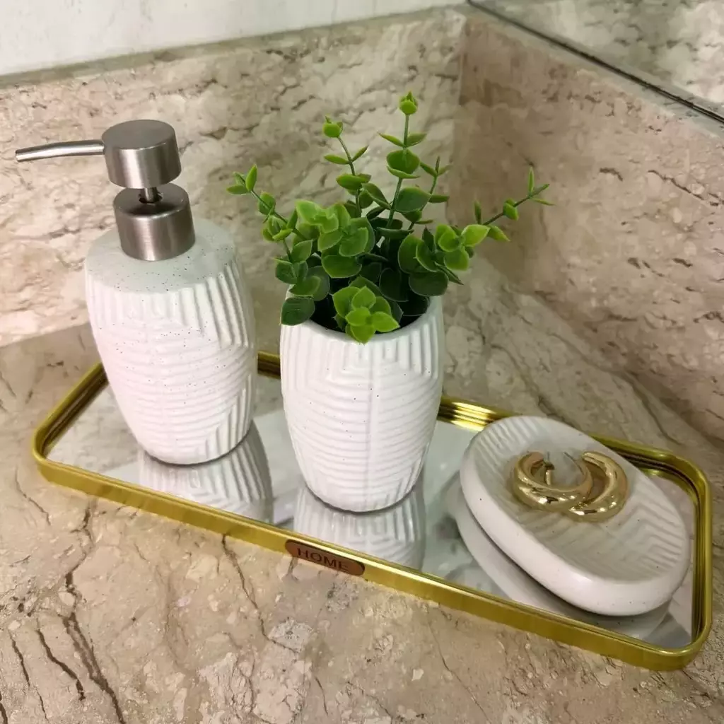 Transforme o seu lavabo em um cantinho elegante e acolhedor com o charme atemporal da linha Paris. Este kit é perfeito para quem valoriza praticidade com um toque de sofisticação. Cada peça foi pensada para trazer harmonia à rotina: o dispenser é ideal para sabonete líquido ou álcool gel, o porta-escova mantém tudo organizado, podendo ser usado também como vasinho, e a saboneteira completa o conjunto com delicadeza. Uma escolha encantadora para o seu lar ou para presentear com bom gosto.