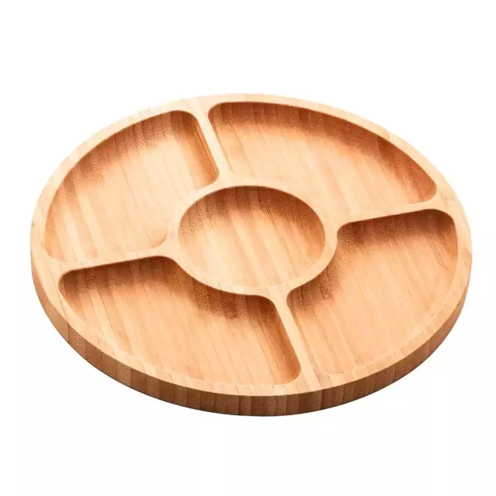 Petisqueira Redonda de Bambu com 5 Divisórias da Lyor – 25 cm