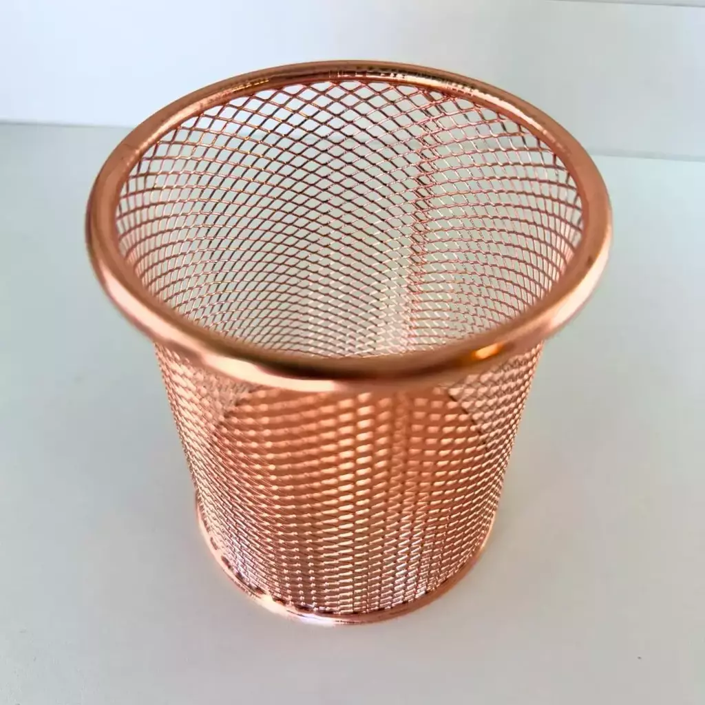 Um charme só! Este porta-treco aramado une funcionalidade e beleza em um design delicado e moderno. Perfeito para organizar lápis, pincéis, tesouras ou o que mais você quiser, ele traz aquele toque sofisticado na cor rosé gold, que faz a diferença na sua bancada, escritório ou penteadeira.